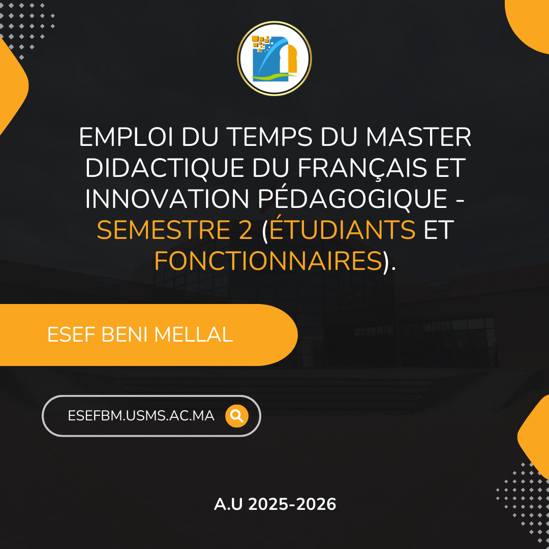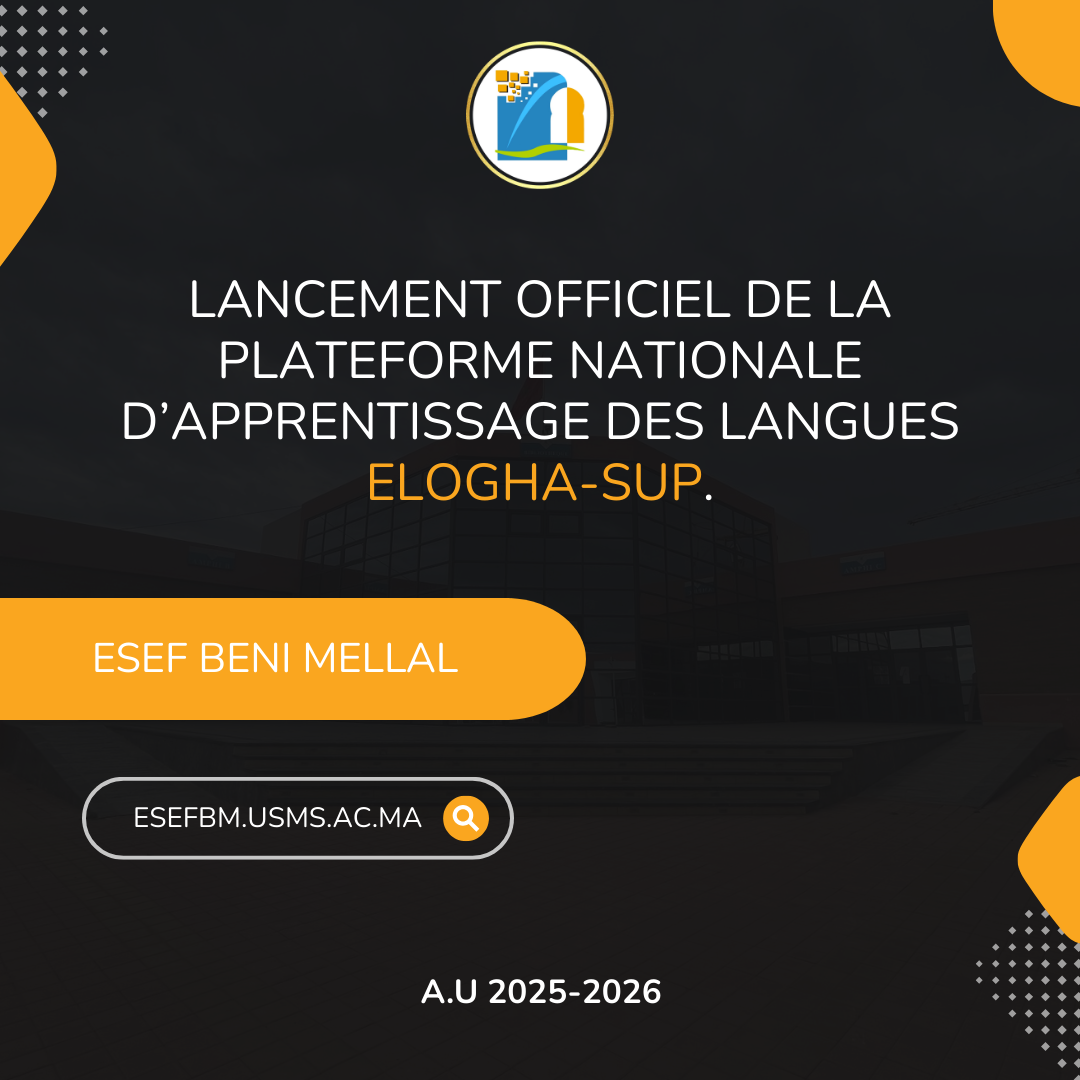 L'Université Sultan Moulay Slimane informe l'ensemble de ses étudiants du lancement officiel de la plateforme ELOGHA-SUP, une initiative nationale innovante dédiée à l'apprentissage des langues vivant...