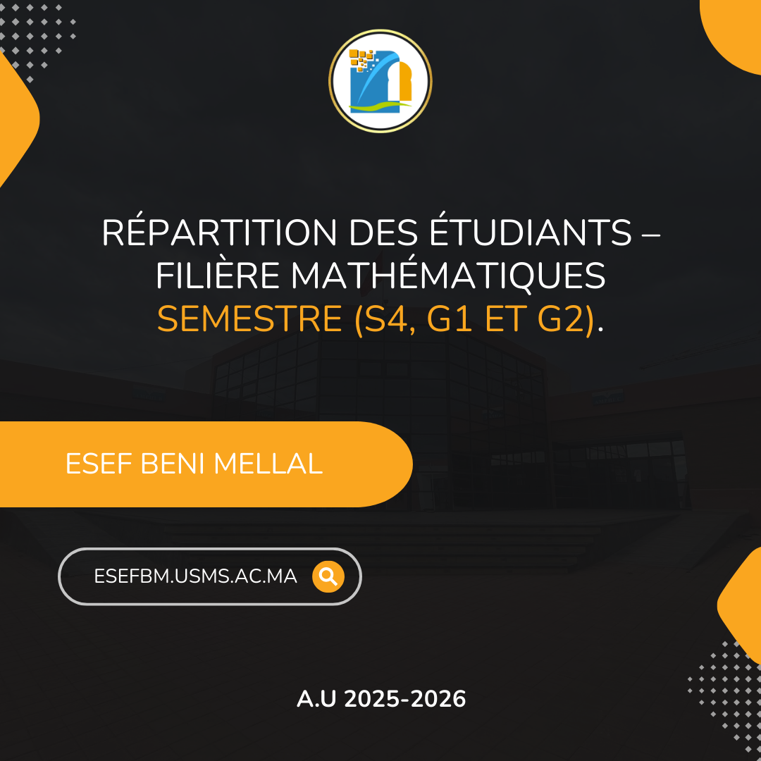 Répartition des étudiants - Filière Mathématiques, semestre (S4, G1 et G2). Pour plus d'informations, cliquez sur le bouton de téléchargement pour télécharger les listes....